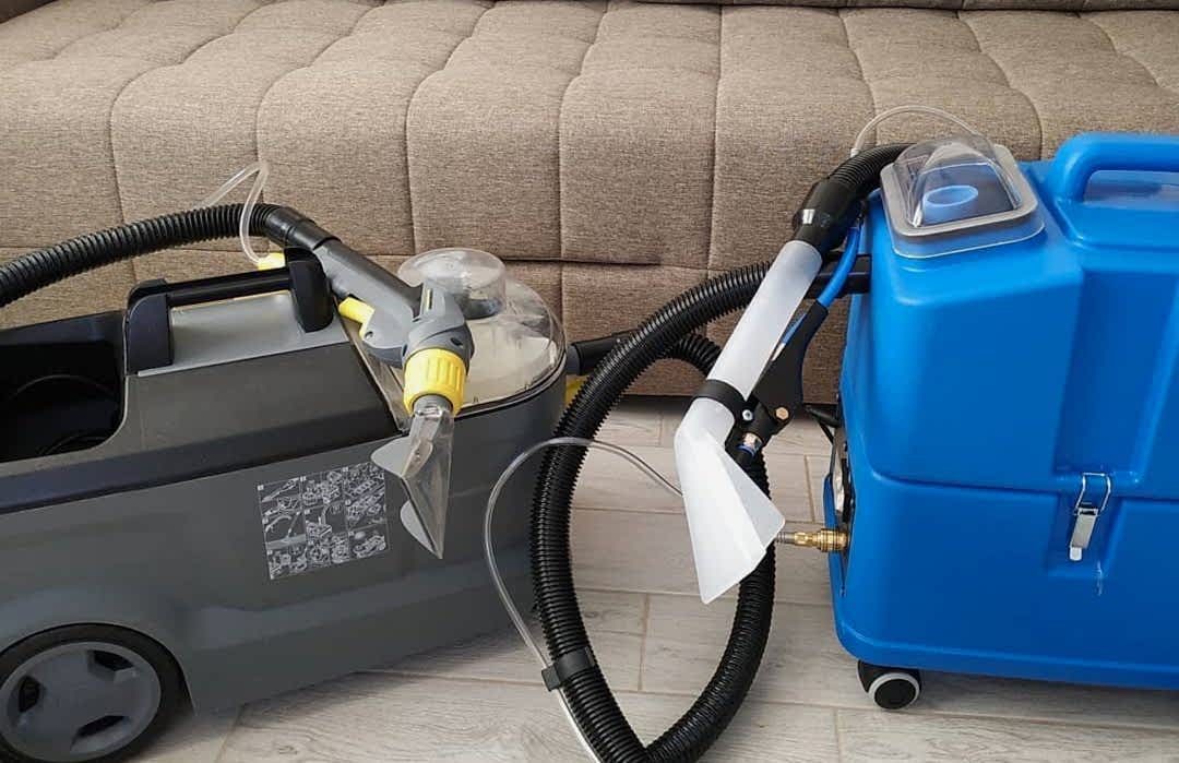 - Сухая чистка.На этом этапе при помощи мощного пылесоса (гораздо мощнее обычно бытового) убирается вся крупная грязь - пыль, песок, крошки от еды, волосы, пух и т.д. Делается то для того, чтобы в дальнейшем все это не превратилось в некрасивый серый налет.
