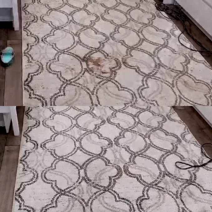 Сушка и проверка:После окончания работ мастер удалил остатки Пин Ап из ковра и оценил состояние ворса. Пятно ушло полностью, слипшийся ворс поднят и приведен в первоначальное состояние. И в целом ковер стал выглядеть значительно свежее, а краски - ярче. Клиенты остались довольны работой.